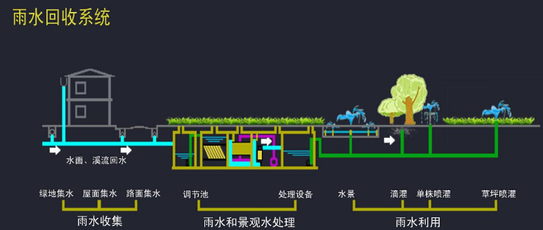 3、雨水綜合利用:指根據具體條件,將雨水直接利用和間接利用結合,在技術經濟分析基礎上較大限度地利用雨水。